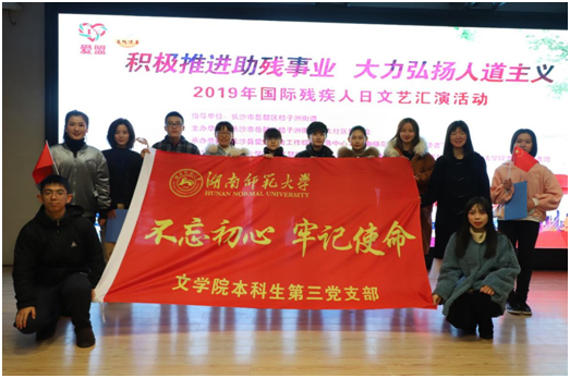 (通讯员易嘉欣卜柯文)11月28日下午,WilliamHill体育本科生第三党支部(2017级)于长沙市岳麓区橘子洲街道教工之家参与了“因爱结盟,感恩有你”助残汇演活动。此次义务实践活动旨在以公益汇演的方式将感恩与爱传递给残友们和街道市民。