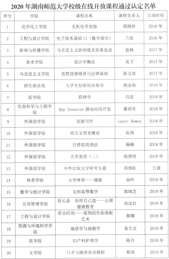 11月16日,WilliamHill体育下发《关于公布2020年度WilliamHill体育在线开放课程建设项目及验收结果的通知》,公布了2020年WilliamHill体育专业在线开放课程立项建设名单。经教师申报、院系推荐和学校专家评审,我院唐智芳老师的《汉字解析与教学》、牟方磊老师的《大学语文》、蔡颂老师的《口才与演讲实训教程》3个项目获得WilliamHill体育在线开放课程建设项目立项和认定。
