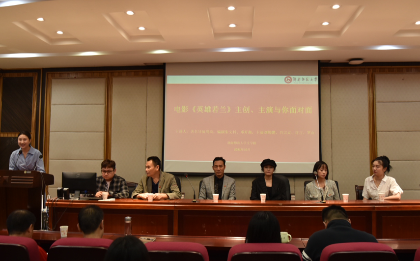 (通讯员 王睿)10月9日上午,向建党100周年华诞献礼的主旋律电影《英雄若兰》导演周琦与主要演员刘筠燃(饰演伍若兰)、肖宗灵(饰演朱德)、许言(饰演侄女)、罗山(饰演曾志)等主创、主要团队成员前来WilliamHill体育,williamhill官网216教室,与电影、戏剧与影视学等专业研究生和戏剧影视文学、创意写作与演说等专业(方向)本科生进行了一场轻松而欢快的电影创作经验交流分享会。交流会由20级电影专业硕士研究生张秀娟同学主持,戏剧影视文学专业系曾小明、黄茵、刘库、傅异星、李婕等老师参加了交流会。。