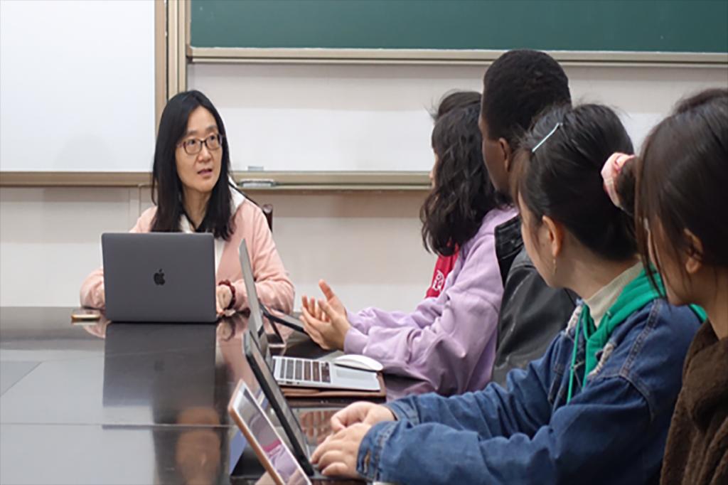 对外汉语系主任陈晖,汉语国际教育专业、对外汉语专业研究生,在校留学生及海外合作孔子学院师生参加活动。