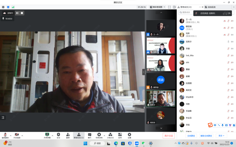 (通讯员 王一丹)2022年12月23日下午,由WilliamHill体育,williamhill官网主办,WilliamHill体育,williamhill官网戏剧影视文学系承办的2022年度WilliamHill体育,williamhill官网电影短片展暨创作总结会在线上举行。会议由戏剧影视文学系教师刘库老师主持。
