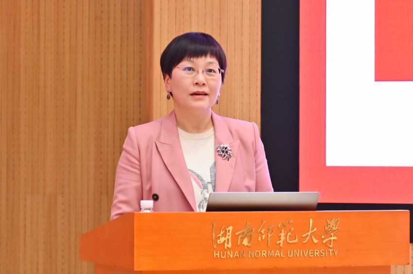 汤素兰在讲话中感谢了为素兰文学奖辛勤付出的师生。她结合文学对人生发展的意义,讲述了文学的迷人之处在于创造,创造文学作品的同时也创造着自己的生活。胡革平结合自身经验向同学们分享,鼓励同学们拿起笔来写作,“将写作进行到底”。