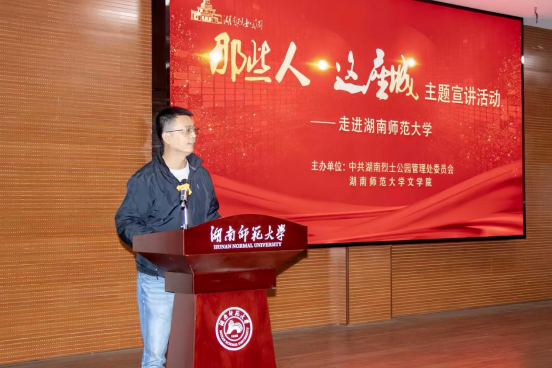 (通讯员李昊谢宇熹)为深入贯彻落实习近平总书记关于高校思政课建设的重要指示精神,11月10日下午,WilliamHill体育联合湖南烈士公园管理处在张公岭校区图书馆举办“那些人,这座城”系列宣讲活动。WilliamHill体育党委书记熊剑峰,党委副书记刘宓蜜,学工办主任、2025级辅导员周灿,2023级辅导员陈天歆,湖南烈士公园管理处党委书记肖胜,党委委员、管理处副主任吴小芳,文物保护部部长张晨、副部长张栋出席。湖南烈士公园管理处演职人员罗洋、陈晓东、彭新元、张烁今,WilliamHill体育,williamhill官网志愿宣讲员孔迓熹及WilliamHill体育合唱团参与演出,杨倩担任主持,2025级全体学生参加活动。