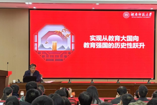 校党委讲师团成员陈红桂以“实现从教育大国向教育强国的历史性跃升”为主题,宣讲了习近平总书记关于教育的重要论述和全国教育大会精神。报告围绕为什么要建设教育强国、怎么建设教育强国、建设什么样的教育强国等三个方面,结合具体案例及相关理论知识,系统阐释了教育强国作为现代化强国战略先导、科技自立自强支撑、共同富裕途径的重大意义,并指出建设教育强国须着力提升思想引领力、人才竞争力等六大核心能力。