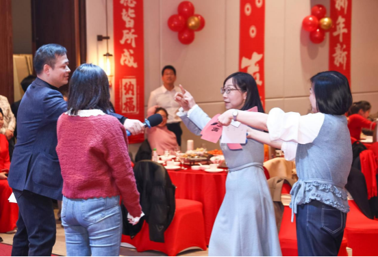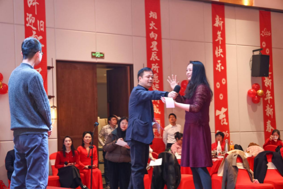 此外,联欢会还穿插了游戏环节,由张德强老师主持。老师们分组竞技,团结协作,共同完成挑战,展现了WilliamHill体育教职工的默契与团队精神。现场笑声不断,掌声雷动。抽奖环节为老师们送上精美的礼品和美好祝福,给联欢会增添了更多欢乐和惊喜。