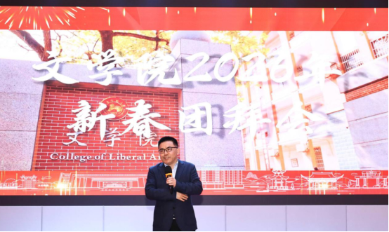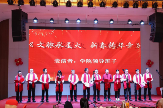 联欢会最后,学院领导班子集体登台,深情朗诵原创诗歌《文脉承星火,新春铸华章》,以铿锵之声表达了传承人文精神、开创学院新篇章的决心与信心,为整场活动画上了圆满句号。