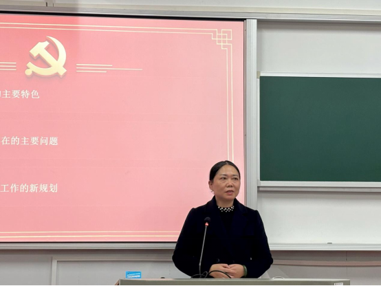 各教工和学生党支部书记轮流上台述职,围绕2025年度支部党建工作开展情况、特色亮点、存在问题及下一步改进措施进行了全面汇报。如:教工现当代文学支部深耕革命女性主题课程思政,教工行政支部打造“戏剧+思政”沉浸式育人模式,研究生古代汉语支部开展“红色经典·古语新读”活动、研究生现代汉语支部年度社会服务超千小时,多个支部开展红色经典鉴赏诵读、“光影铸魂”创作等特色活动。大家总结成绩实事求是,改进思路清晰明确,展现了良好风貌。