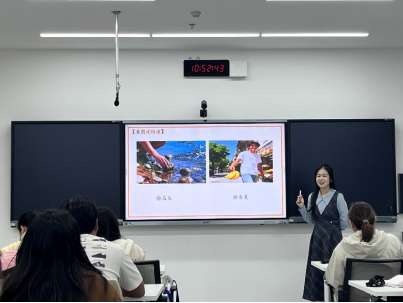 在课堂教学中,陈思含以生动有趣的情境导入,通过实物展示、动作演示、互动问答等形式激发学生学习兴趣,对本课的生词、语言点及课文展开教学。课堂上,陈思含注重引导学生通过选词填空、看图说短语、词语找朋友等活动强化语言运用,其教态自然亲和,语音标准清晰,教师用语简洁规范,充分展现了汉语国际教育专业学生的基本素养与教学潜力,课堂氛围活跃有序,学生参与度较高。